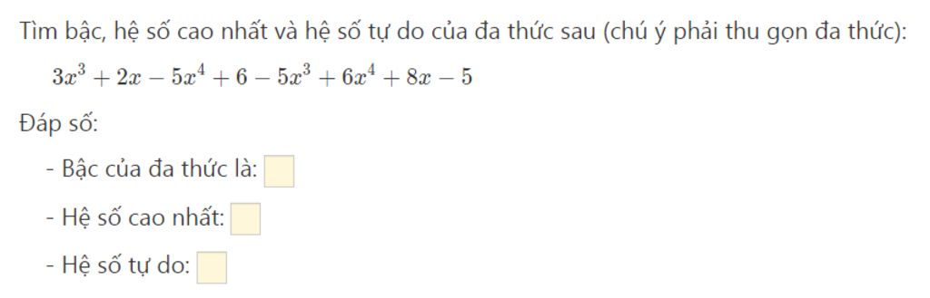 Bậc của đa thức là 4