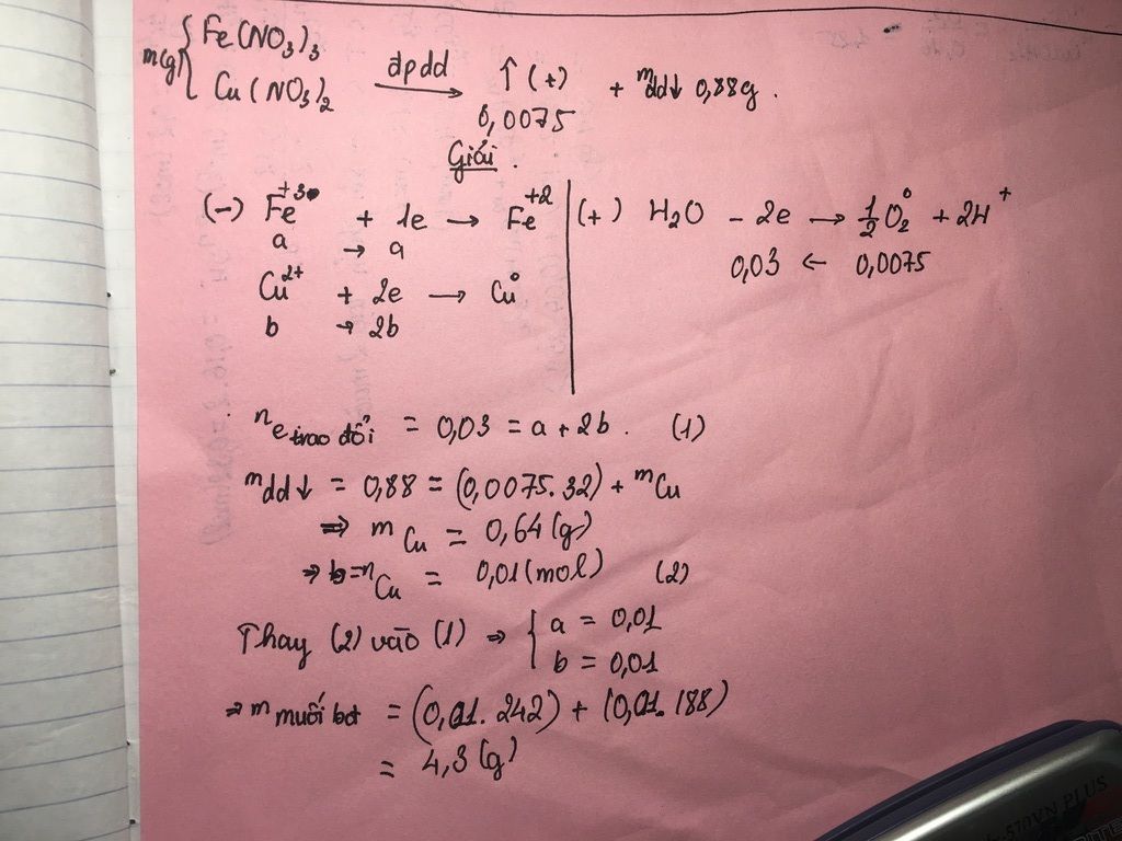 Vậy dd ban đầu chứa: Fe(NO3)3: 0,01 (mol) và Cu(NO3)2: 0,01 (mol)