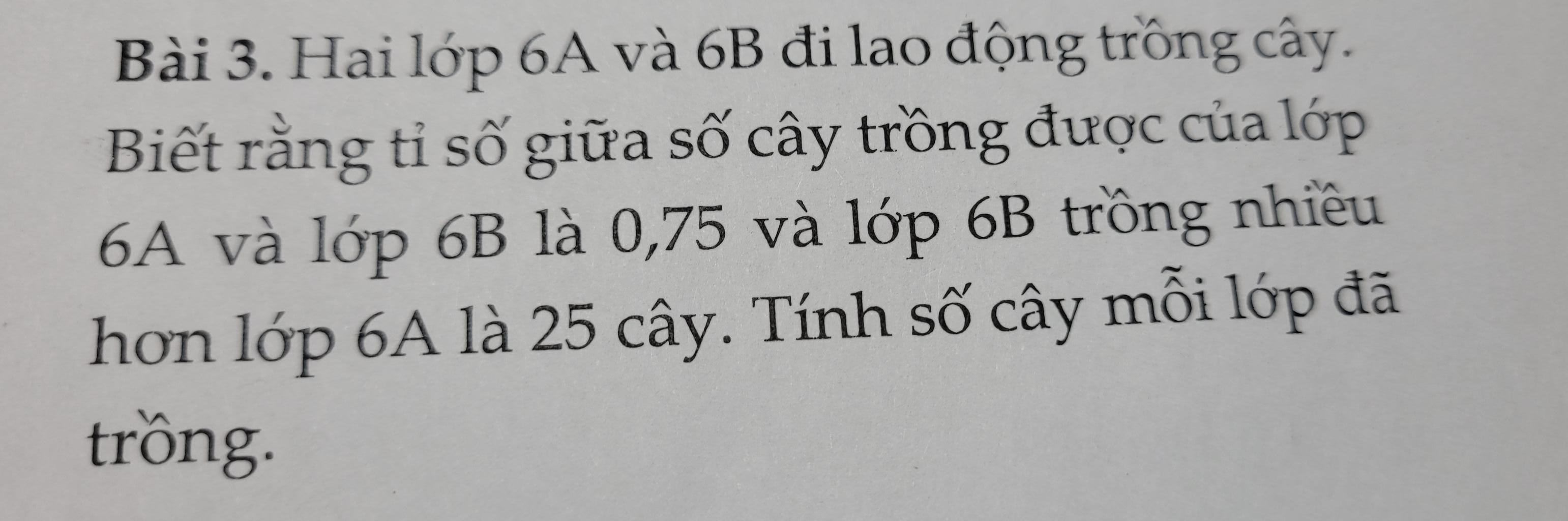 `=>` Lớp `6B` trồng `75+25=100` cây