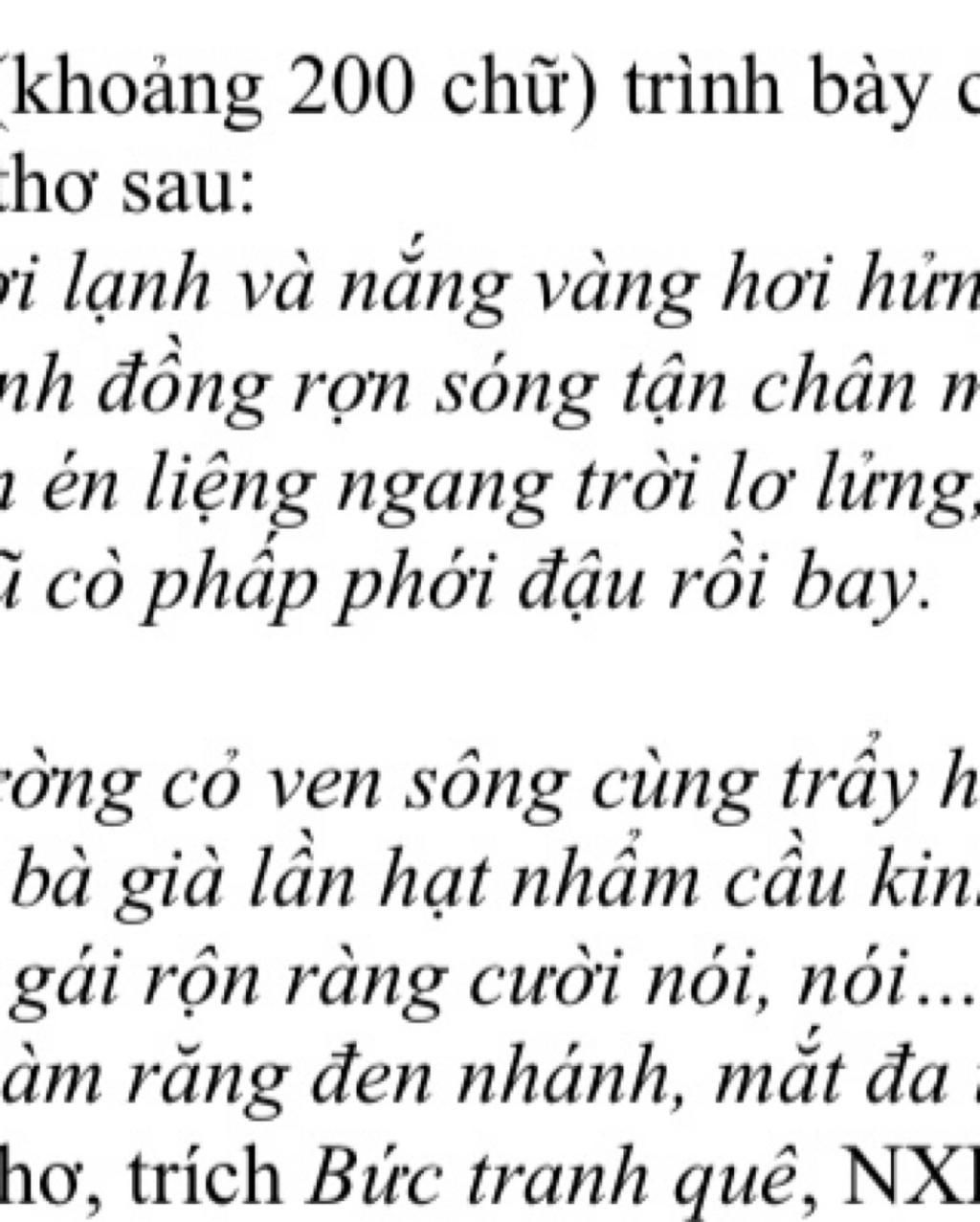 Viết đoạn văn (khoảng 200 chữ) trình bày cảm nhận của anh/chị về vẻ đẹp của