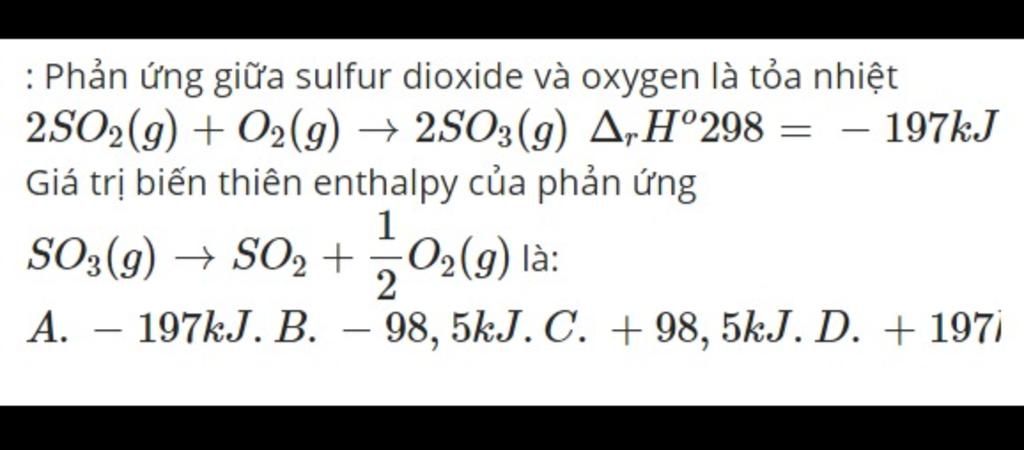 $\rm 2SO_2 +O_2 \to 2SO_3 ~~~~~~\Delta _rH_{298}^0=-197kJ$ (1)