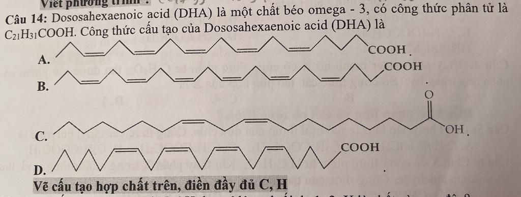 Nhận thấy đáp án B đúng vì có 22 C và thoả mãn 1 `pi` trong `-COOH` và 6 `pi` trong gốc hydrocarbon