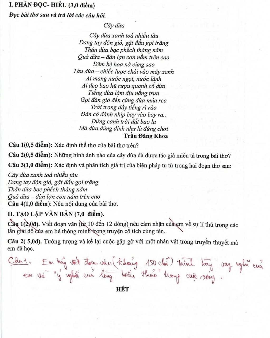 Đáp án:câu 1: