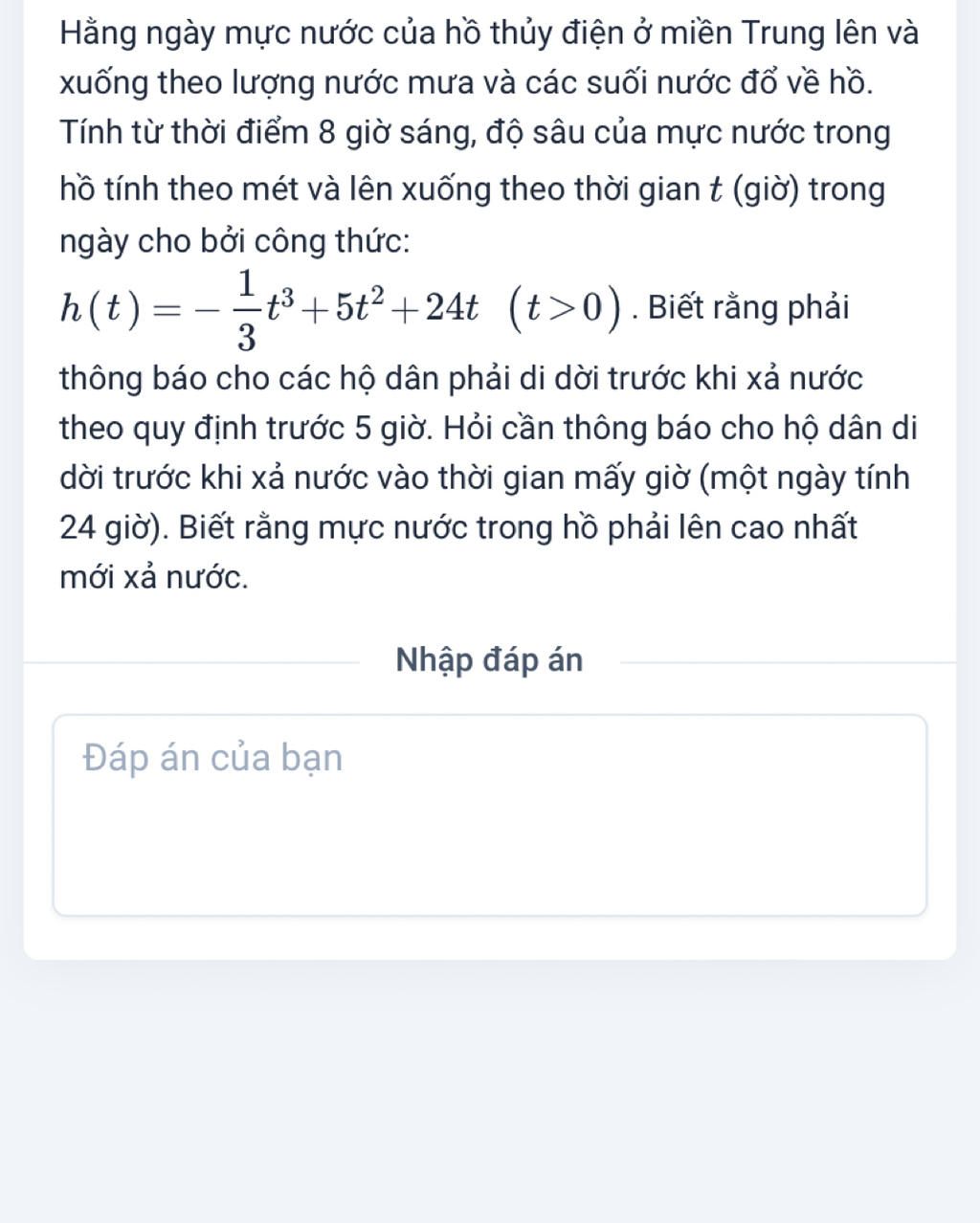 Vậy cần thông báo cho hộ dần di dời nước trước khi xả nước vào `15` giờ chiều