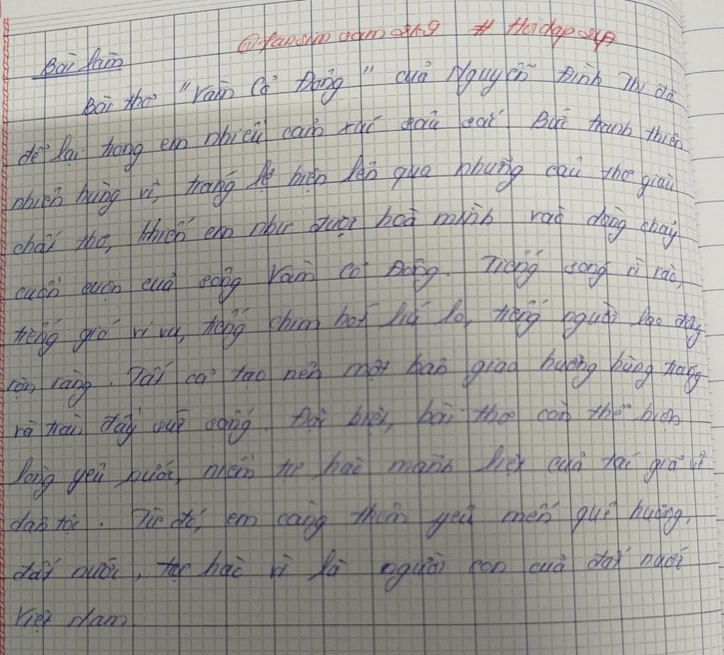Đoạn văn: Cảm nghĩ về bài thơ "Vàm Cỏ Đông" khoảng `150` chữ.