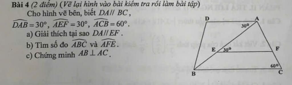 `=>` `\hat{ABC}` `=` `\hat{AEF}` `=` `30^@` (2 góc đồng vị)