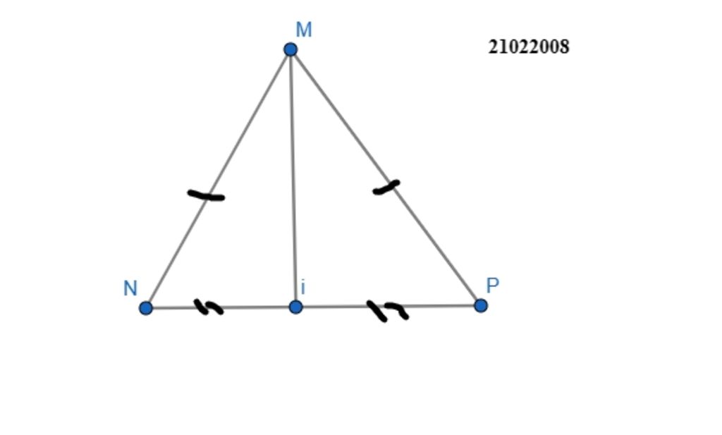 `=>` `Mi` là đường trung tuyến đồng thời là đường cao của `\triangle MNP`