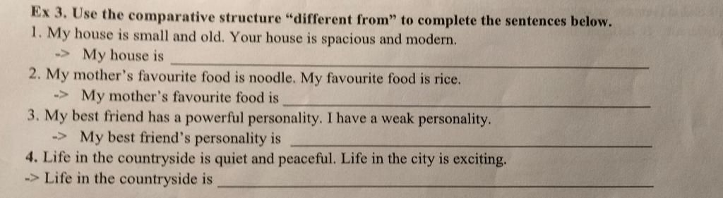 Cấu trúc chung của các câu: S1 + tobe + different from + S2