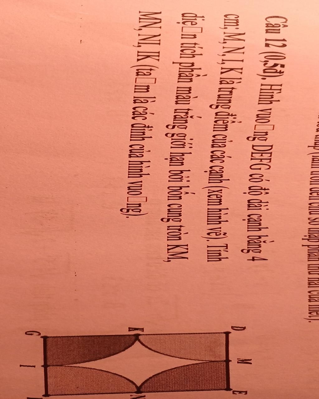 diện tích phần màu trắng giới hạn bởi bốn cung tròn KM,