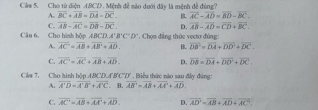 Chọn đáp án `C`. Đây là quy tắc hình hộp.