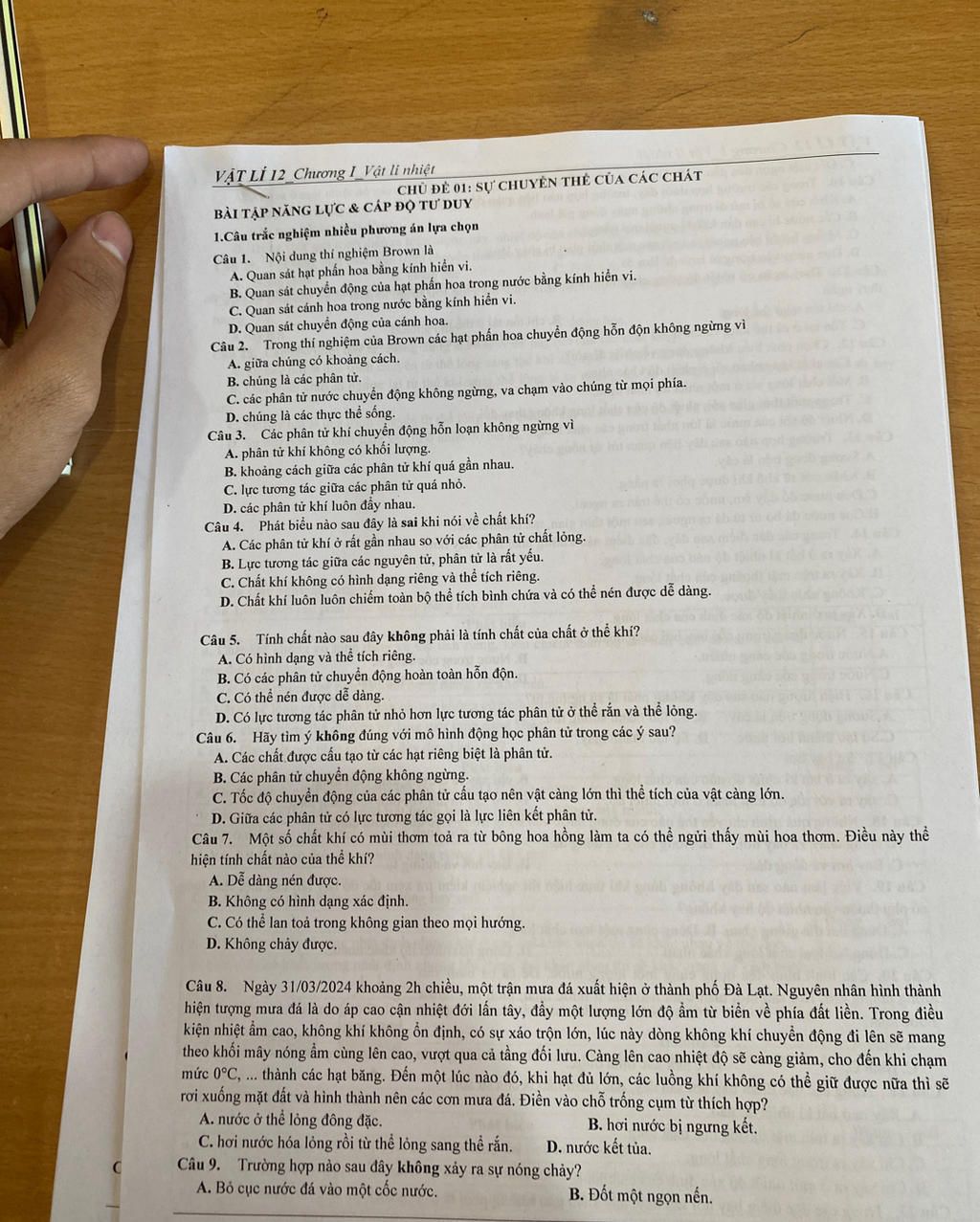 → Do các phân tử nước chuyển động hỗn loạnxung quanh va chạm mọi phía vào các hạt phấn hoa tạo ra áp lực lên mọi phía không đều làm hạt phấn hoa chuyển động hỗn loạn không ngừng