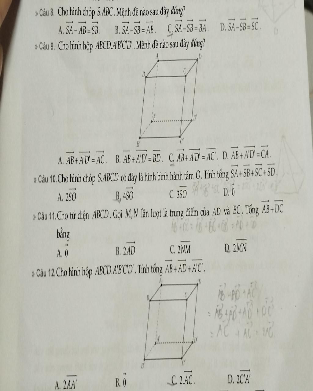 $=2\vec{MN}$ vì $M, N$ là trung điểm $AD, BC$