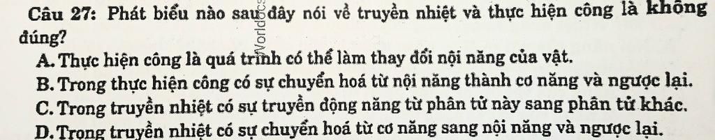 Sai, vì trong truyền nhiệt chỉ có sự truyền nội năng (nhiệt năng) chứ không có sự chuyển hoá từ cơ năng sang nội năng.