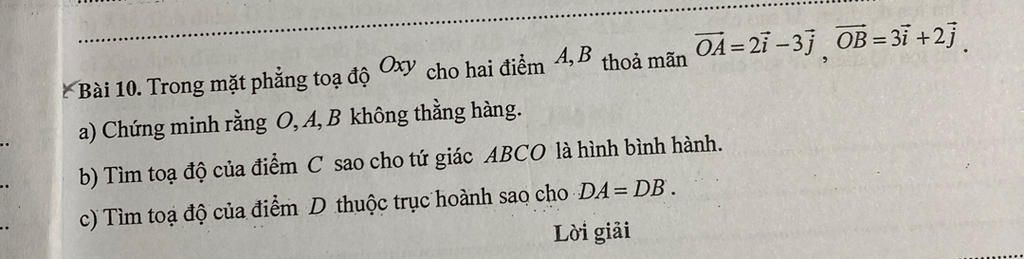 b.Vì $\vec{OA}=2\vec{i}-3\vec{j}\to A(2,-3)$