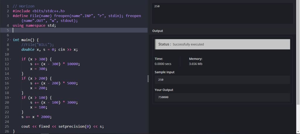 - Một số nguyên dương duy nhất x (x ≤ 100000) là số kWh điện mà gia đình của Nam đã sử dụng.