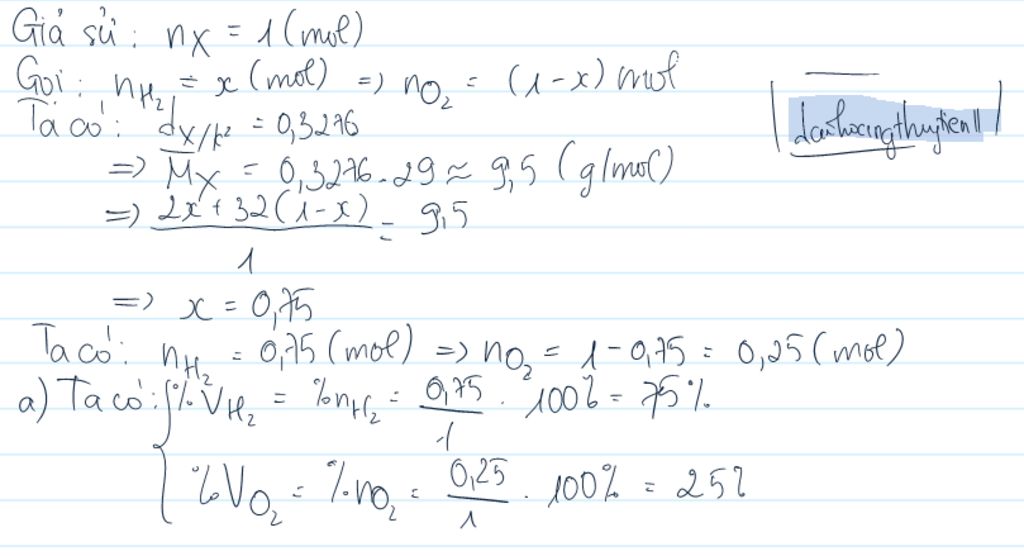 một hỗn hợp X gồm H2 và O2 có tỉ khối so với không khí là 0,3276