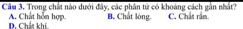 Trong các chất, chất có khoảng cách gần nhất là chất rắn