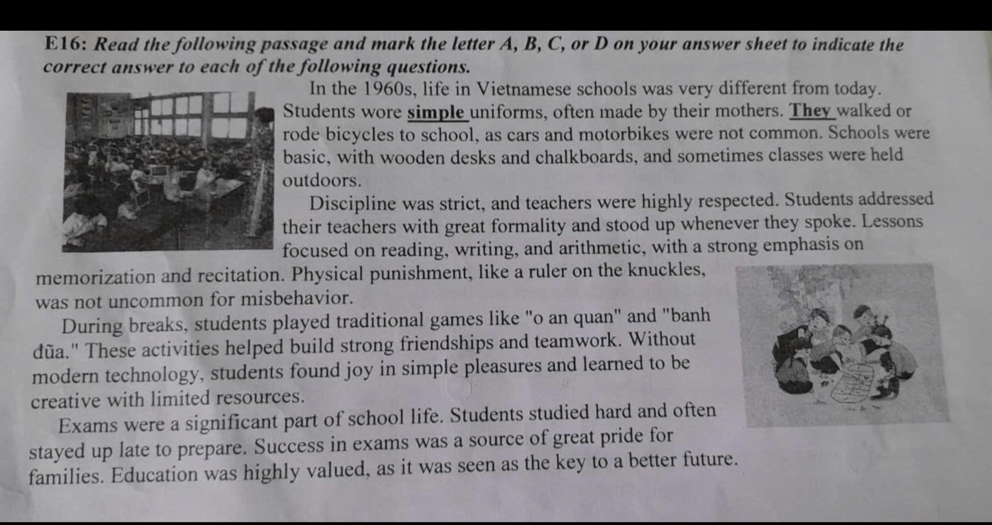 - Trong đoạn văn không đề cấp đến vấn đề "Học sinh được tiếp cận với công nghệ hiện đại". Vì vào năm 1960s thời đó chưa có công nghệ giảng dạy tiên tiến