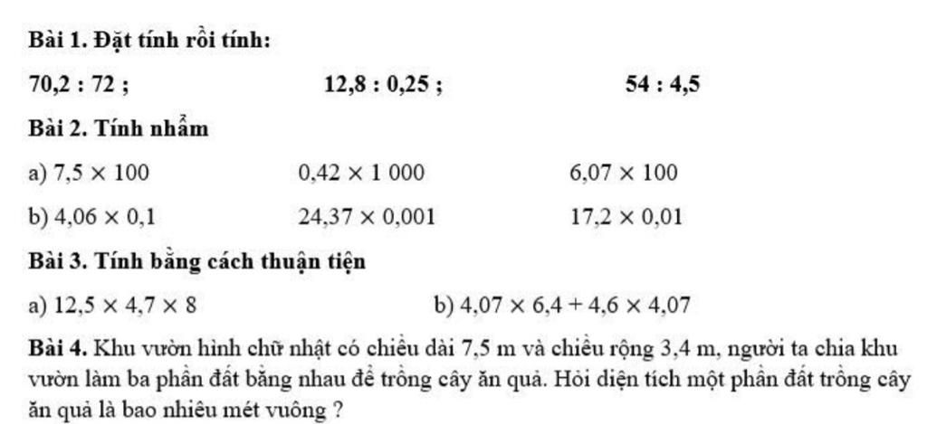 Bài 4. Khu vườn hình chữ nhật có chiều dài 7,5 m và chiều rộ ...