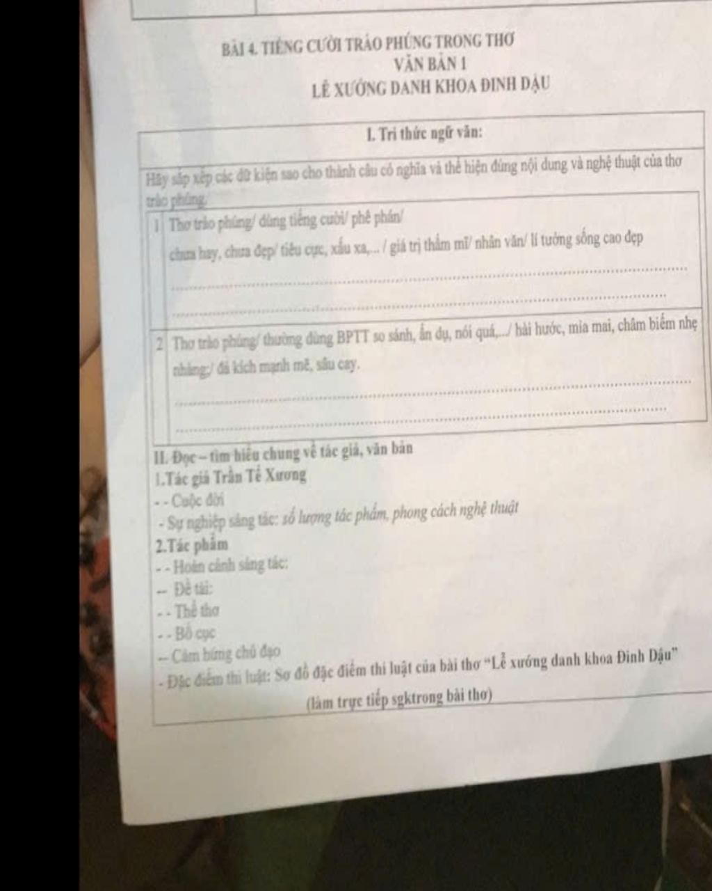 Giải hộ mik phiếu học tập với bài lễ xướng danh khoa đinh dậu nhé