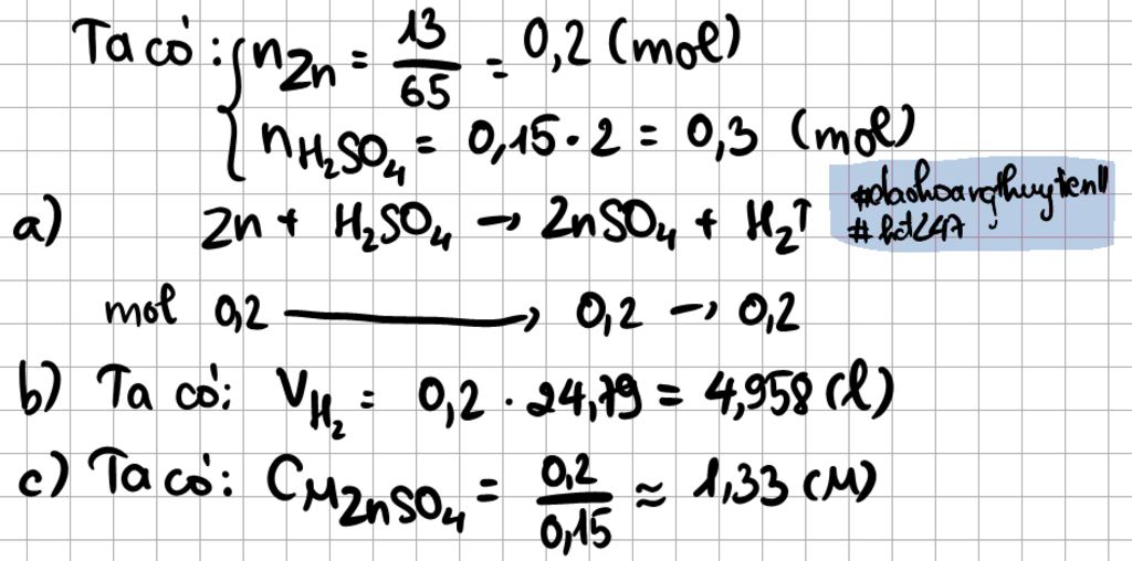 Cho 13g kẽm tác dụng với 150 ml H2SO4 2M