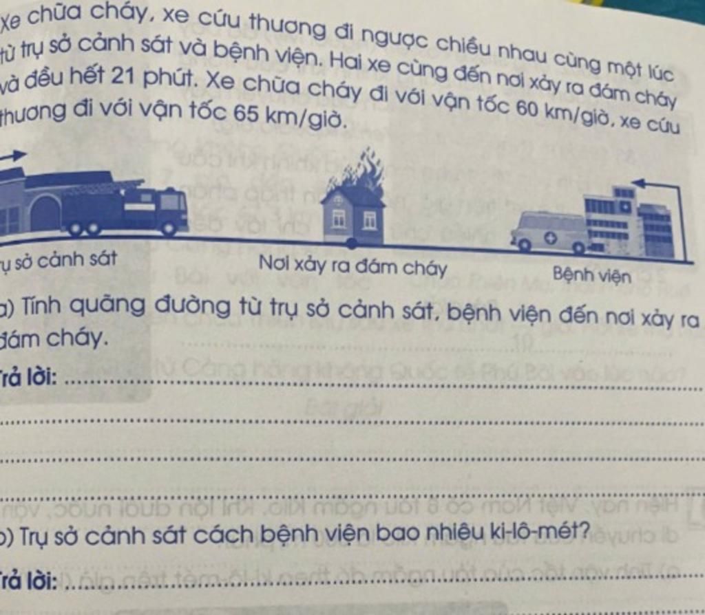 Quãng đường từ bệnh viện sát đến đám cháy là: