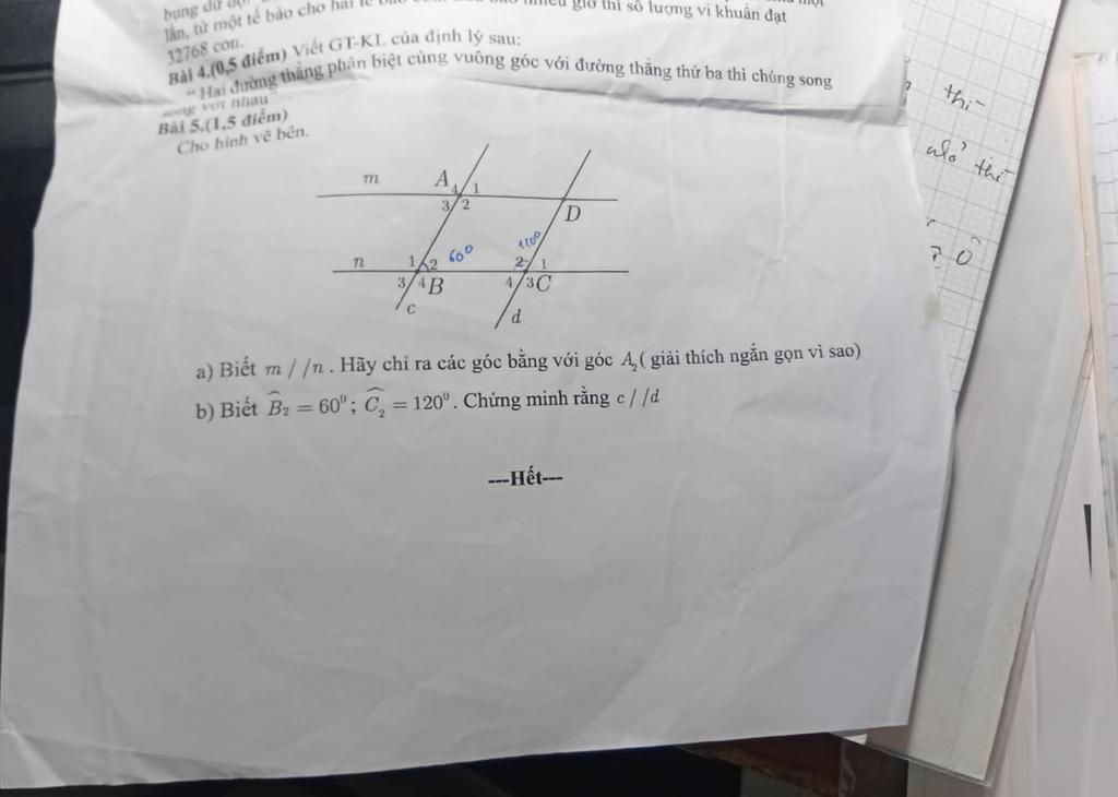 Vì `m` $\parallel$ `n` nên `\what{A_2}` `=` `\hat{B_4}` `( 2` góc đồng vị )