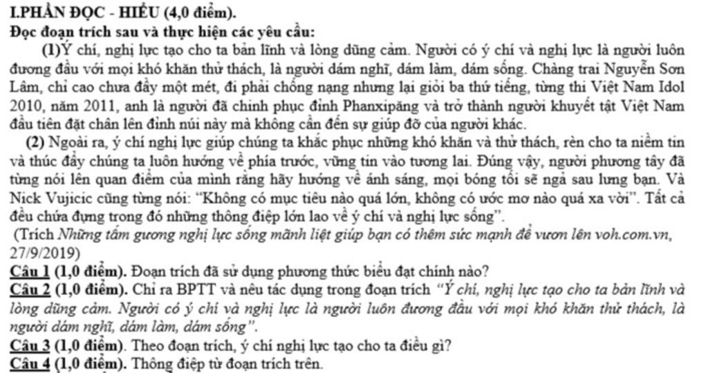 `=>` Đoạn trích bàn luận về giá trị của ý chí nghị lực bằng các luận điểm, dẫn chứng và lí lẽ xác đáng để thuyết phục người đọc.