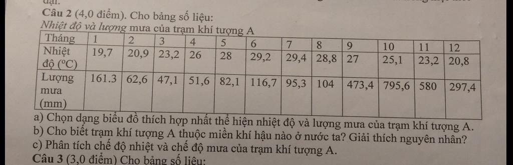 Biểu đồ kết hợp cột thể hiện lượng mưa đường thể hiện nhiệt độ
