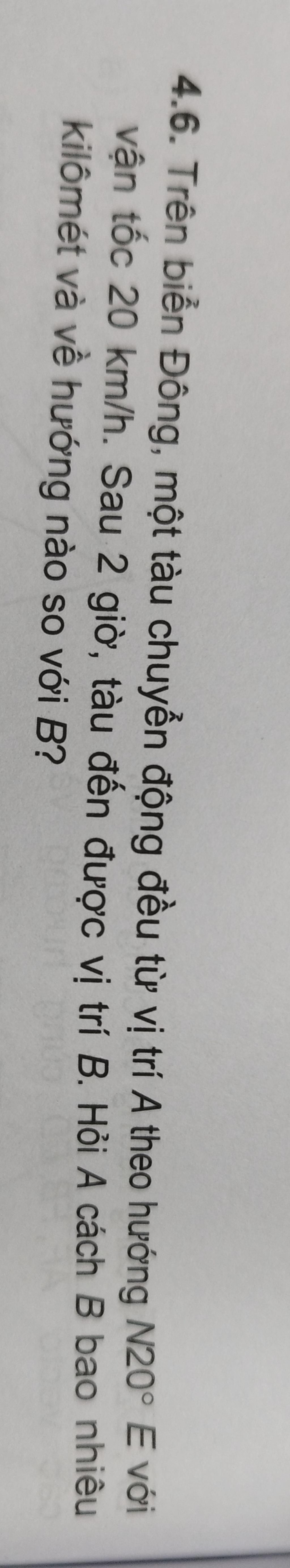 4.6. Trên biển Đông, một tàu chuyển động đều từ vị trí A theo hướng N20° E với
