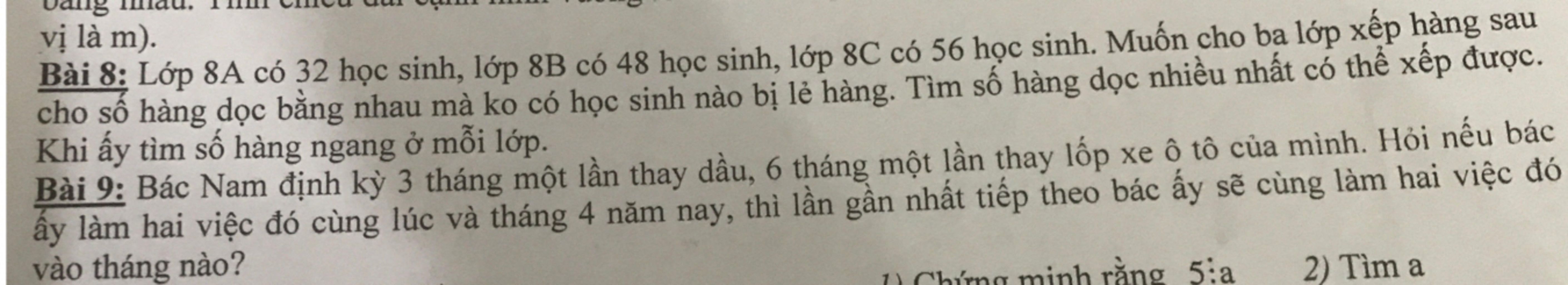 `+)` Lớp `8C: 56 : 8 = 7(`hàng`)`