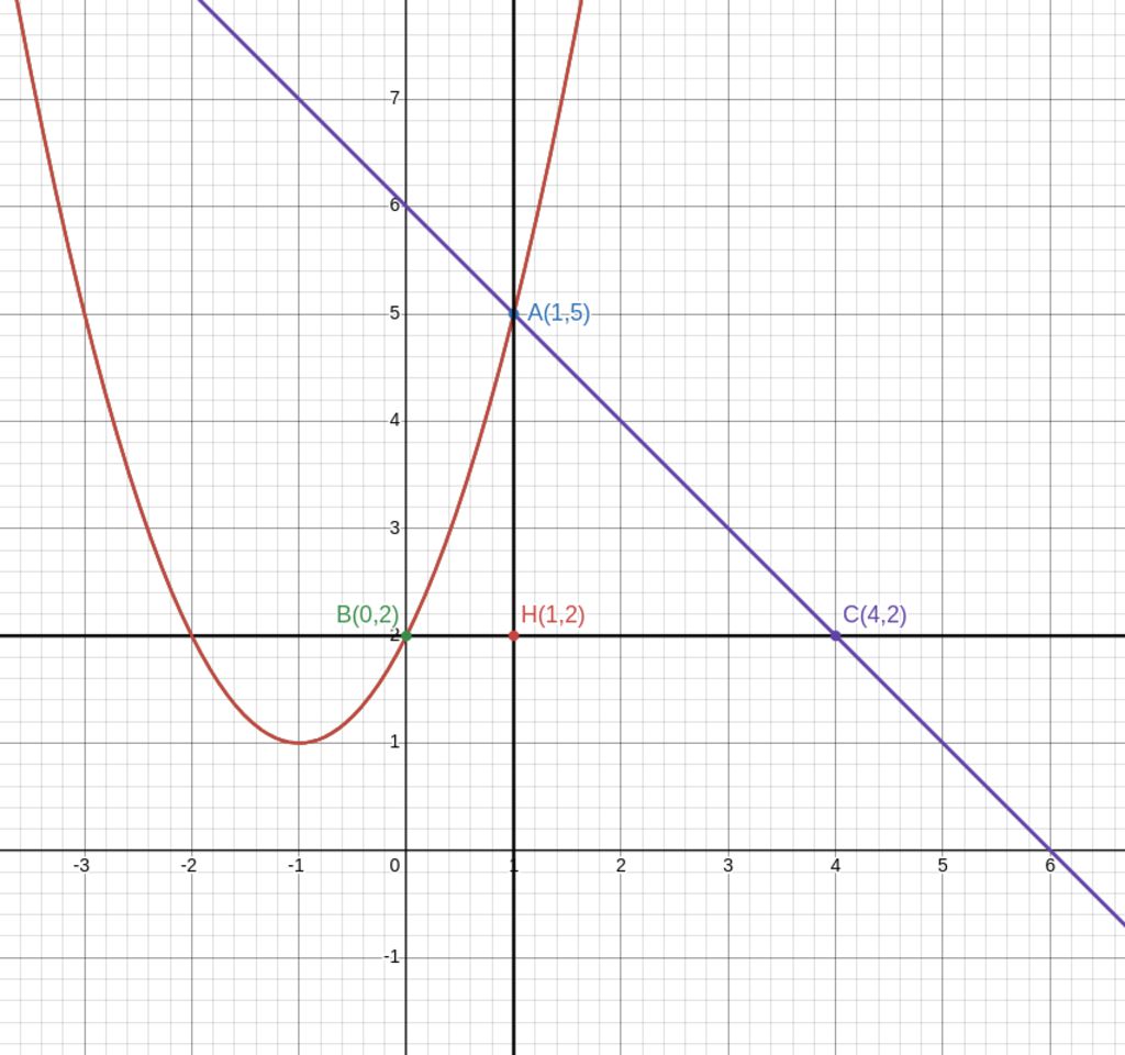 Tìm giao điểm $y=x^2+2x+2, y=6-x, y=2$ như hình vẽ