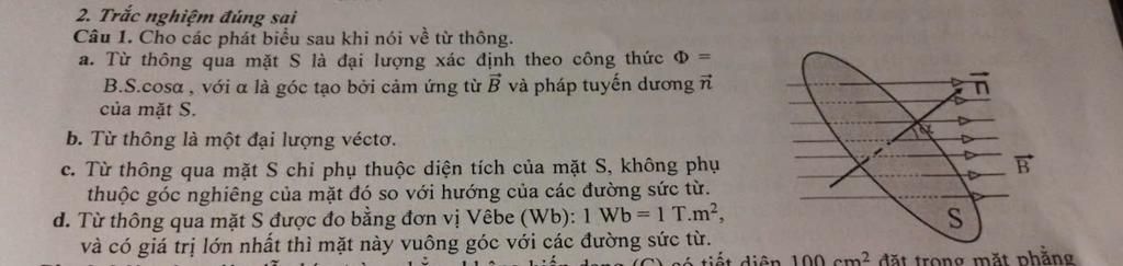 Câu 1. Cho các phát biểu sau khi nói về từ thông.