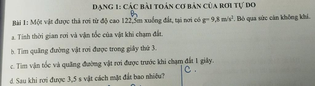 Sao câu `c` có `v=gt_1=g(t-1)` vậy?