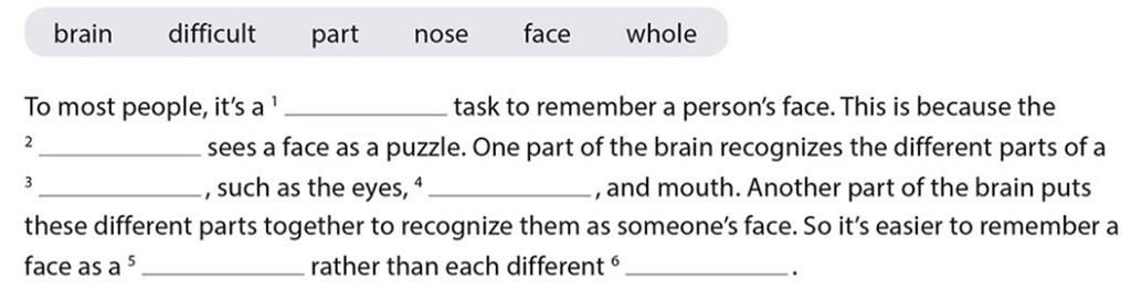 1.difficult 2.brain 3.face 4.nose 5.part 6.whole