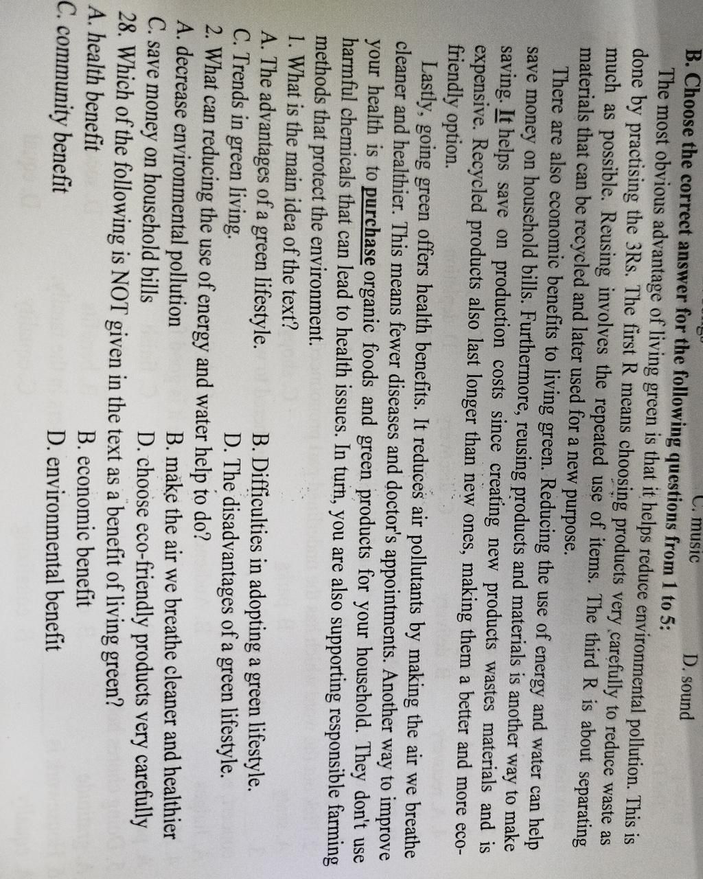$-$ Toàn bộ bài viết tập trung viết 3 lợi ích chính của việc sống xanh: