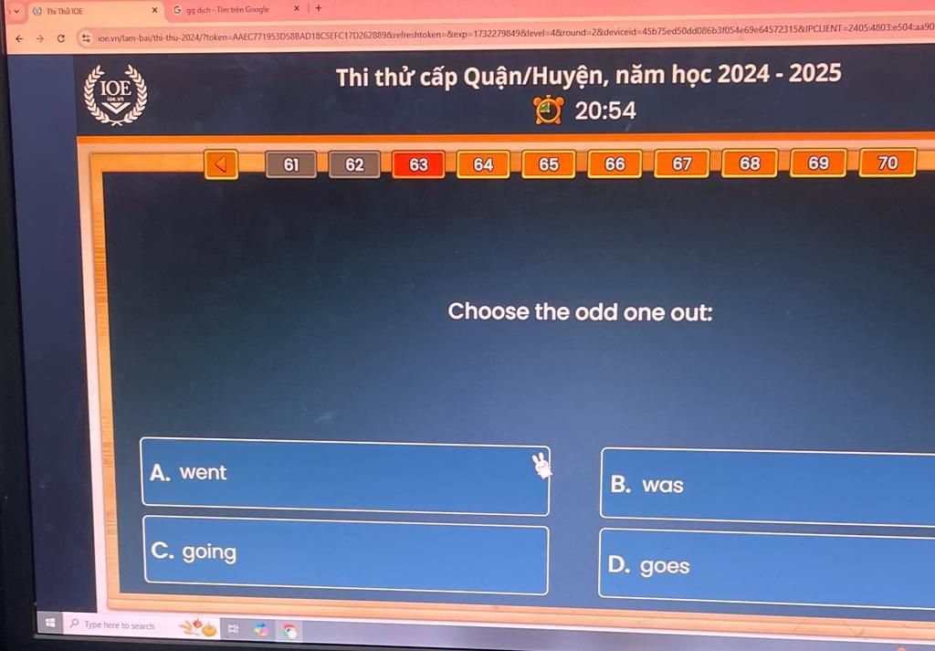 Đáp án: `B.` `(` Là Vtobe còn lại là V thường `)`