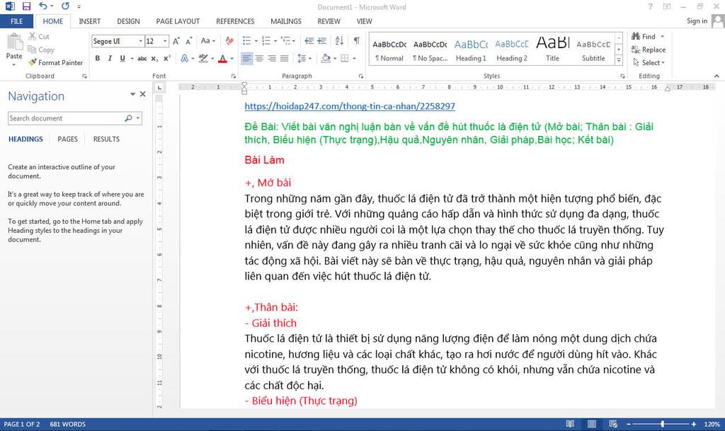 ĐỀ BÀI: VIẾT BÀI VĂN NGHỊ LUẬN BÀN VỀ VẤN ĐỀ HÚT THUỐC LÁ ĐIỆN TỬ (MỞ BÀI ; THÂN BÀI: GIẢI THÍCH, BIỂU HIỆN(THỰC TRẠNG), HẬU QUẢ, NGUYÊN NHÂN, GIẢI PHÁP, BÀI HỌC ; KẾT BÀI)
