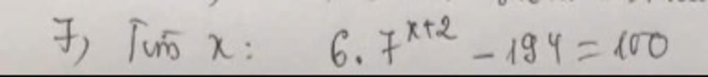 `6*7^(x+2)-194=100`