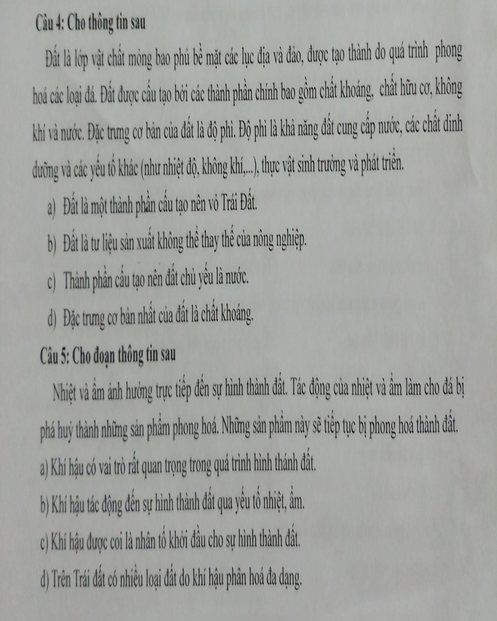 `->` Giải thích: Nhân tố khởi đầu cho sự hình thành đất là đá mẹ vì khi đá mẹ phong hóa sẽ thành đất