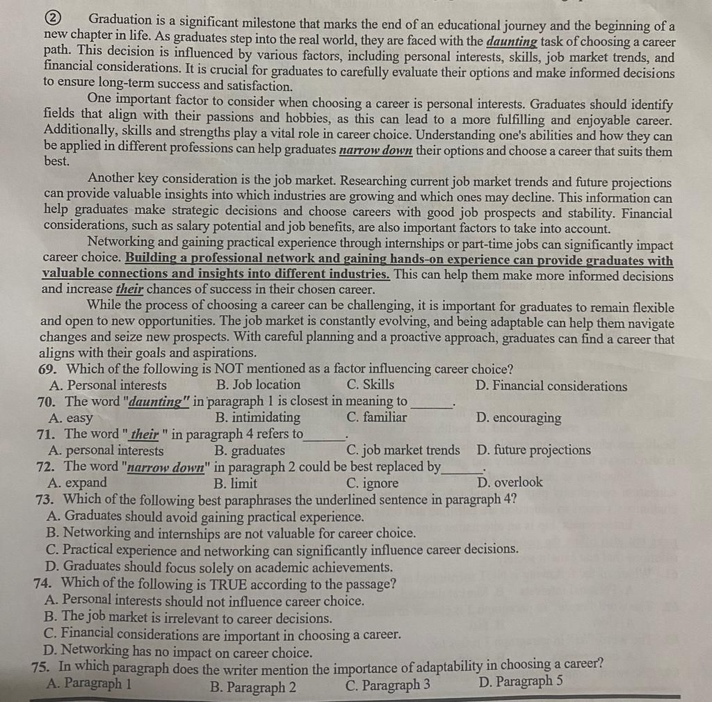 `-` Dẫn chứng: It is crucial for graduates to carefully evaluate their options and make informed decisions to ensure long-term success and satisfaction.