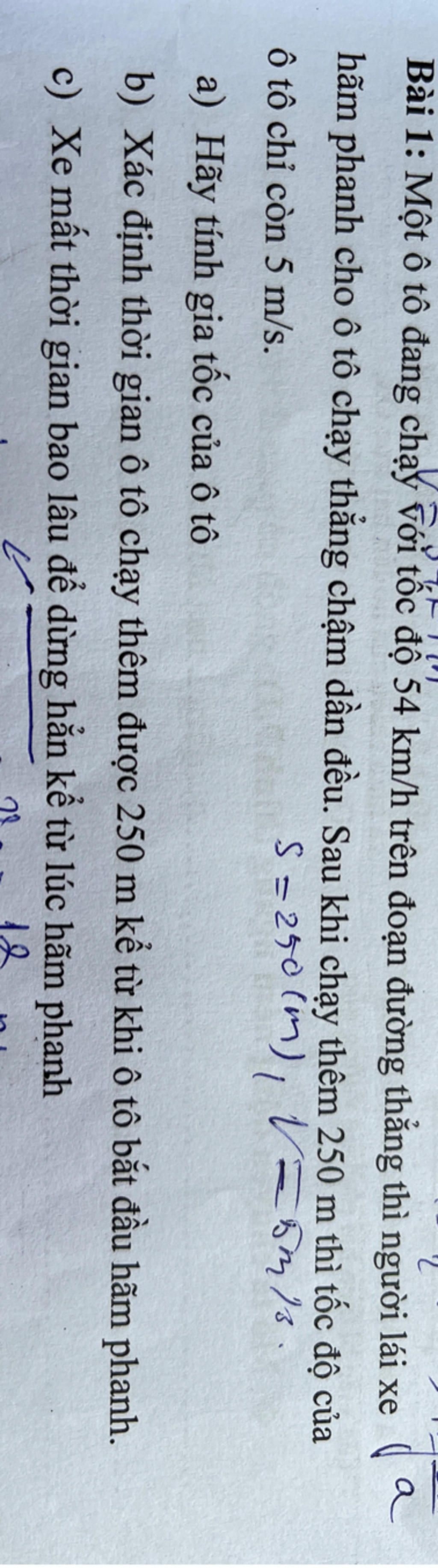 `->` Thời gian ô tô chạy thêm `250` kể từ lúc hãm phanh: `t=25` giây