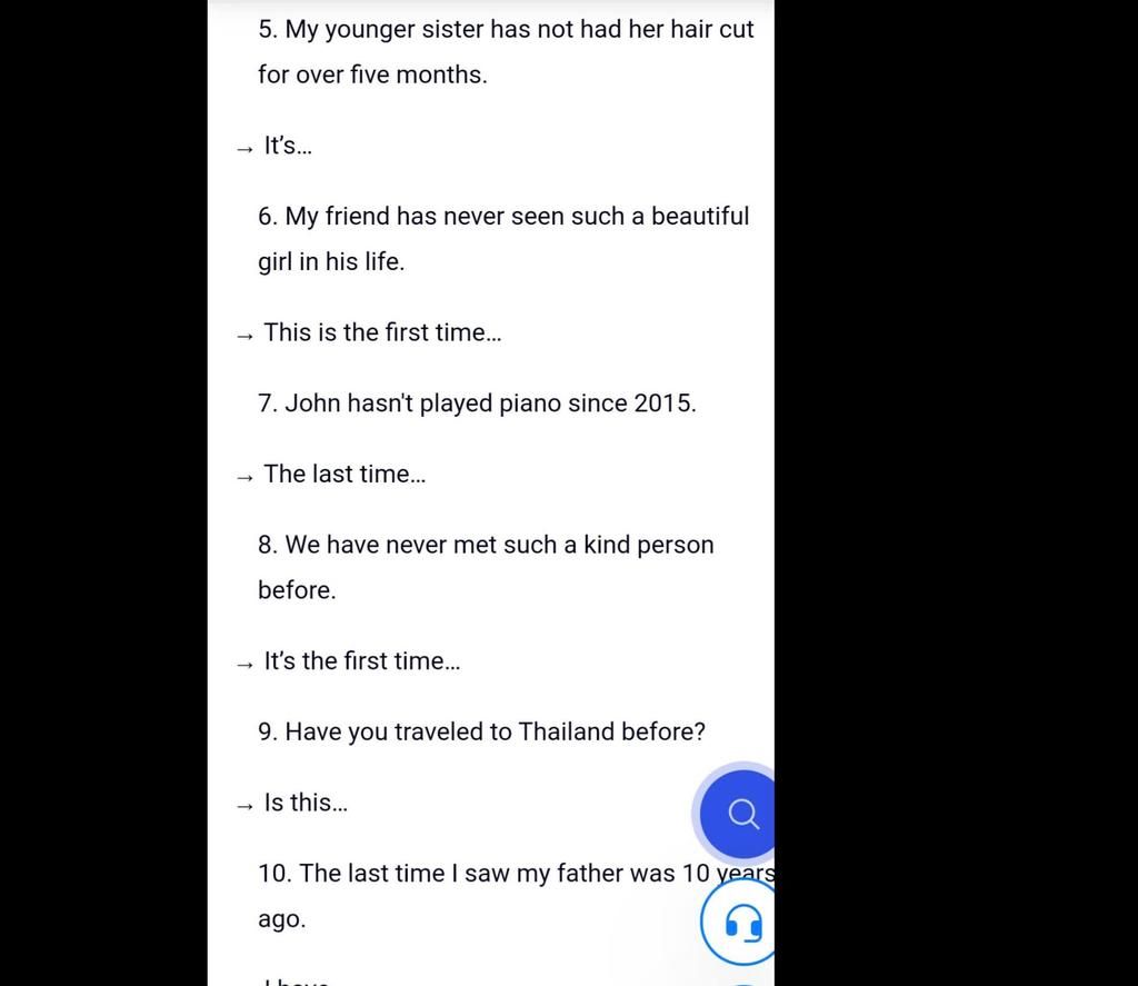`6.` This is the first time my friend has ever seen such a beautiful girl.