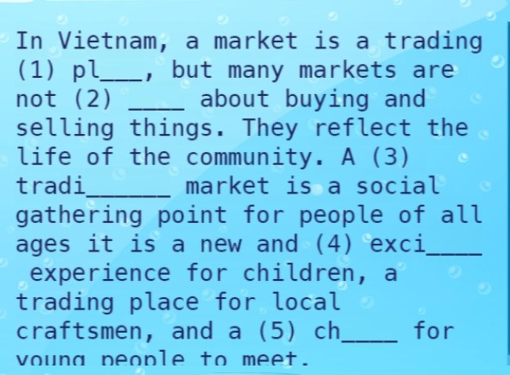 - Trading place (phr n): Nơi buôn bán.