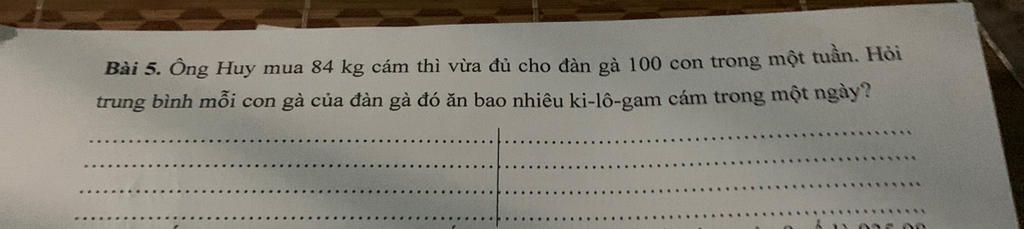 Mỗi ngày đàn gà ăn số `kg` cám là: