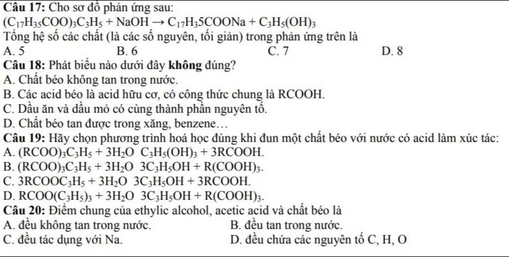 Acid béo phải có số C lớn và số nguyên tử C chẵn