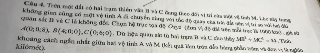 $\to AM=AI-IM=\sqrt{77}-3\approx 5.77$ nghìn km