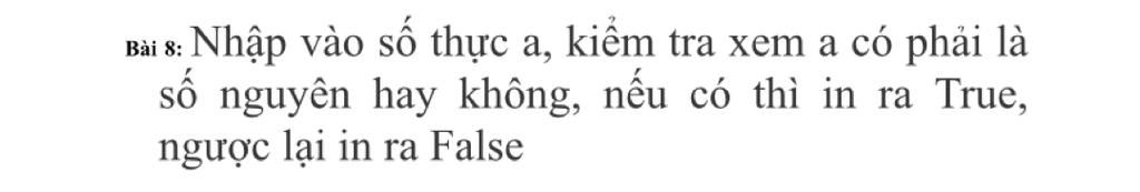 print(n == int(n))Hãy giúp mọi người biết câu trả lời này thế nào?