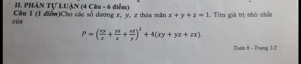 $\to P=\dfrac{x^2y^2}{z^2}+\dfrac{y^2z^2}{x^2}+\dfrac{z^2x^2}{y^2}+2\cdot \dfrac{xy}z\cdot\dfrac{yz}x+2\cdot\dfrac{yz}x\cdot \dfrac{zx}y+2\cdot\dfrac{zx}y\cdot \dfrac{xy}z+4(xy+yz+zx)$