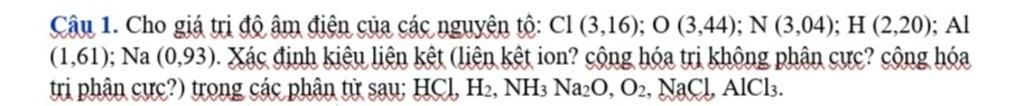 `-` `NH_3`, `HCl`, `AlCl_3` có liên kết cộng hóa trị phân cực